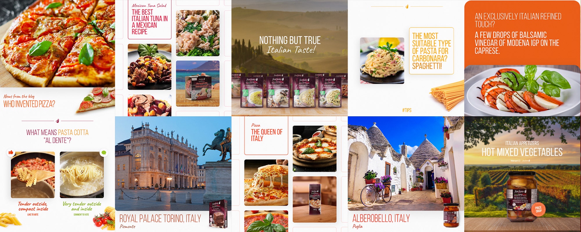 Il racconto di un brand si esprime tramite i valori: 100% fatto in Italia con garanzia di autenticità, ingredienti che suscitano piacere/passione, prodotti rappresentativi della tipicità /regionalità italiana, ampia offerta