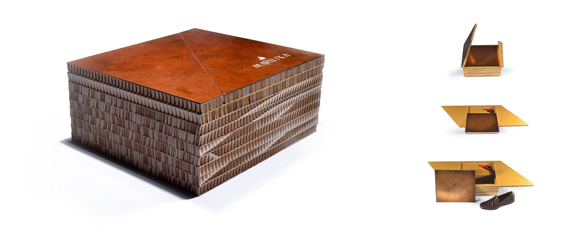 Il packaging da consegnare al visitatore contiene brochure, scarpa sample per mettere in evidenza la perfetta manifattura, stampa in 3d della scarpa, una richiesta di feedback.
