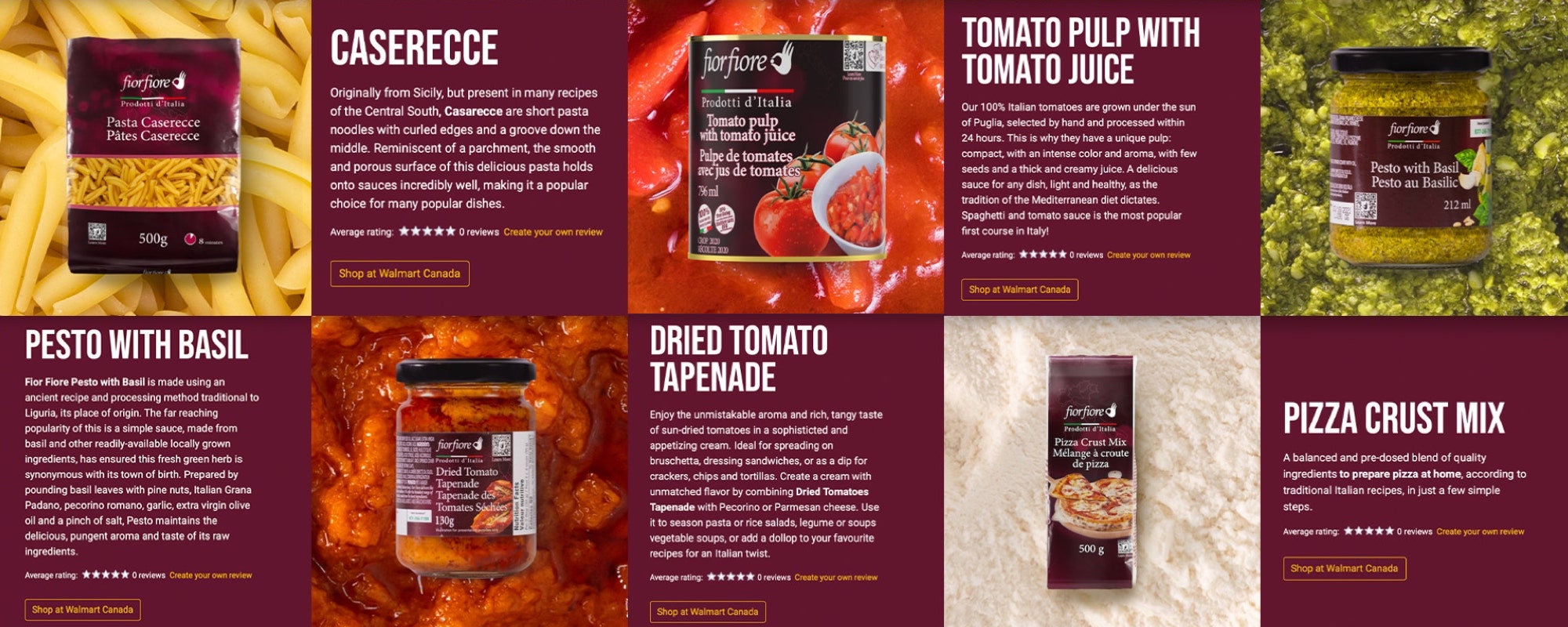 I contenuti del sito sono legati a prodotti, alle materie prime, alle regioni italiane alle ricette, vengono diversificati specificamente per categoria del catalogo.