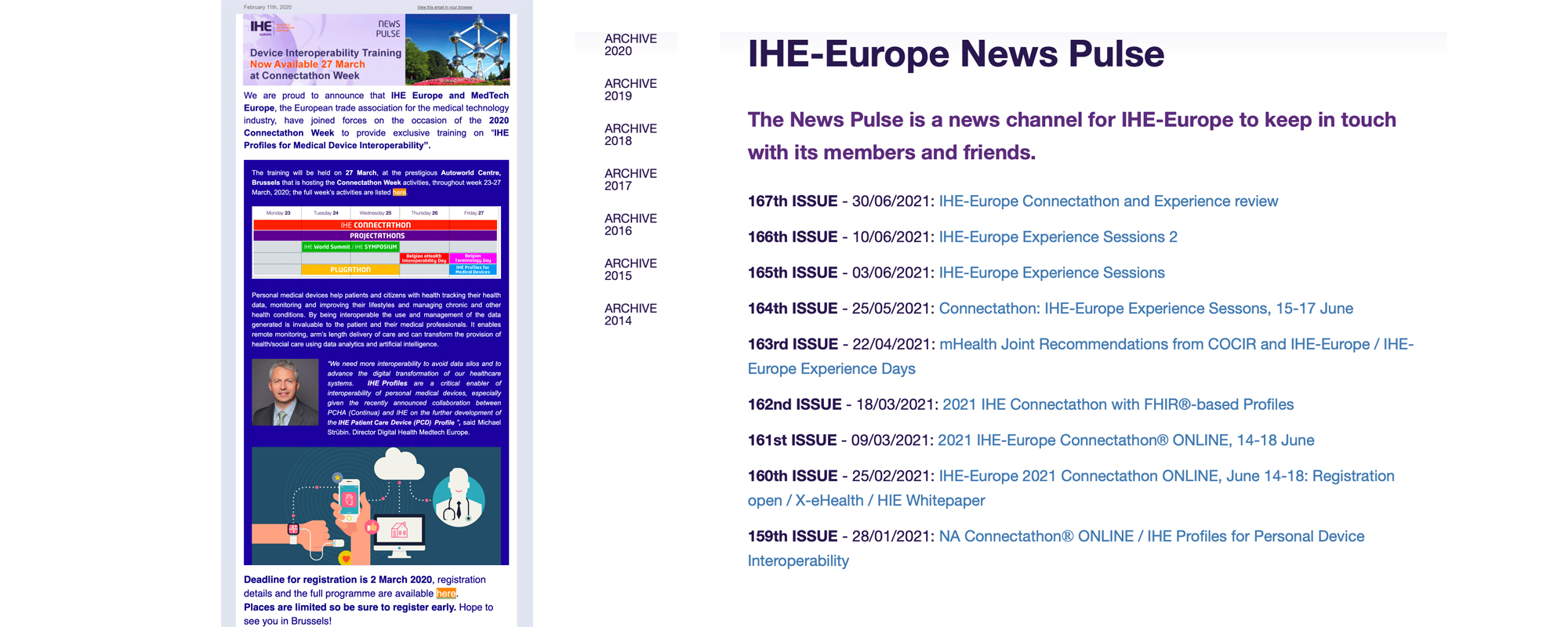 Coro ha curato la strategia, l’apertura ed il setting dei canali social e della Newsletter di IHE-EUROPE, sviluppando un piano editoriale multicanale, in linea con la Content Strategy, in evoluzione con le molteplici attività ed iniziative dell’organizzazione e la completa copertura del principale evento annuale di test di interoperabilità, Connectathon.